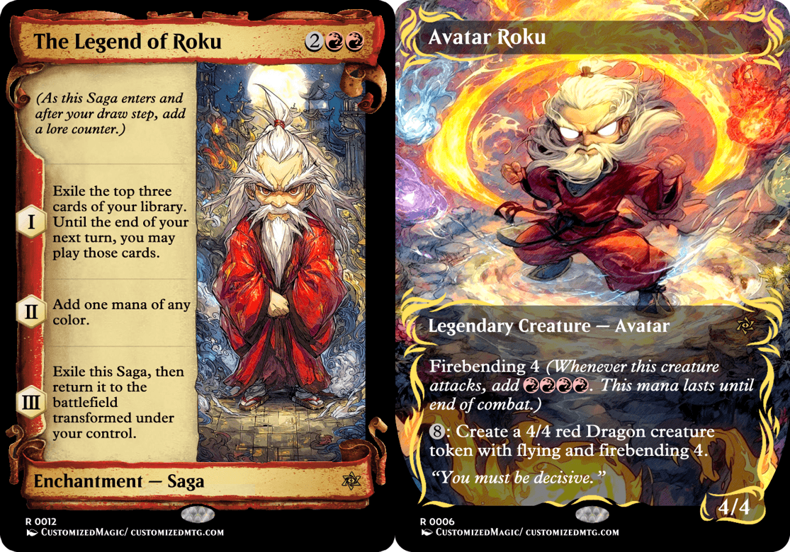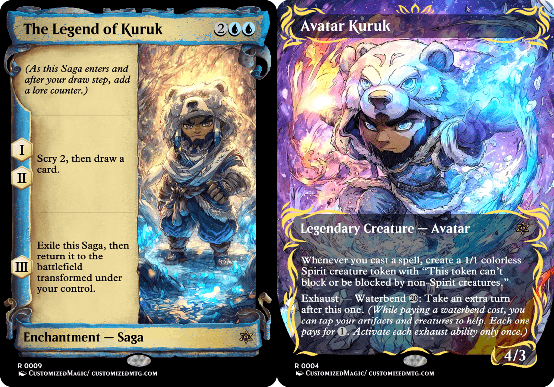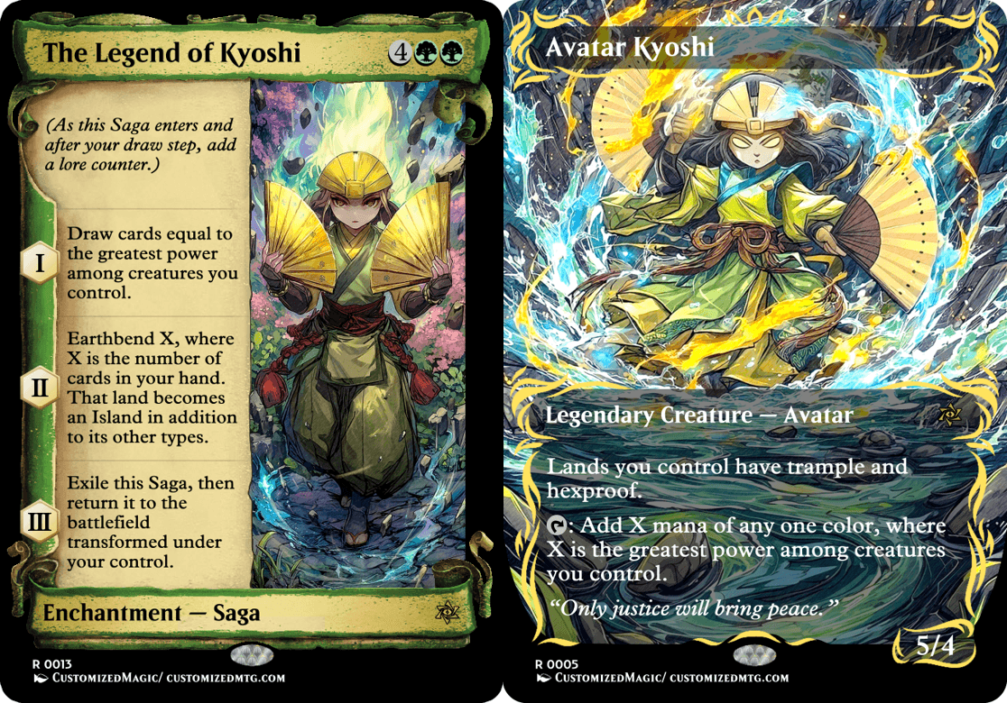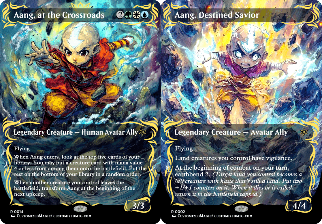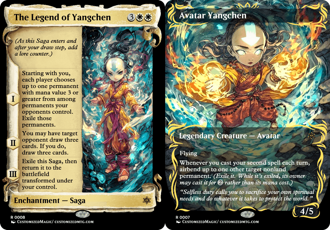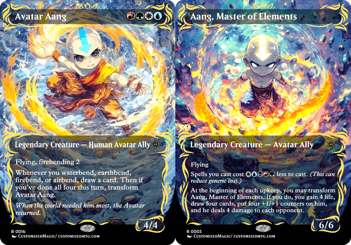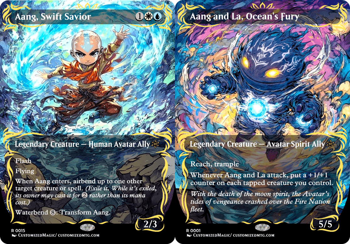 Custom Handmade Avatar: The Last Airbender Double-Sided Commanders – Chibi Edition proxies made from real Magic the Gathering card with many different alternated arts available for purchase.