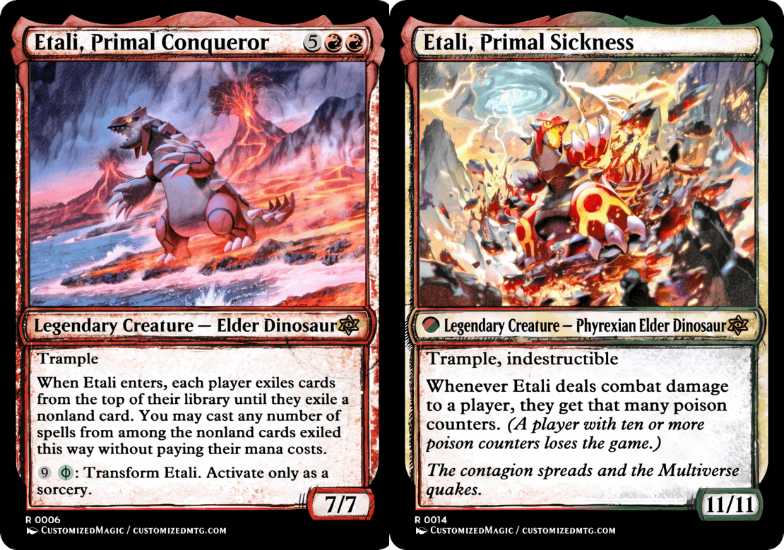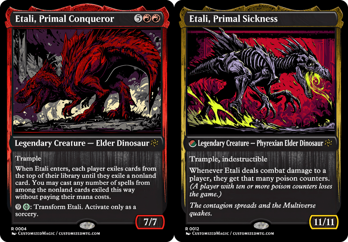 Price range: $7.50 through $15.00Custom Handmade Etali, Primal Conqueror // Etali, Primal Sickness proxies made from real Magic the Gathering card with many different alternated arts available for purchase.