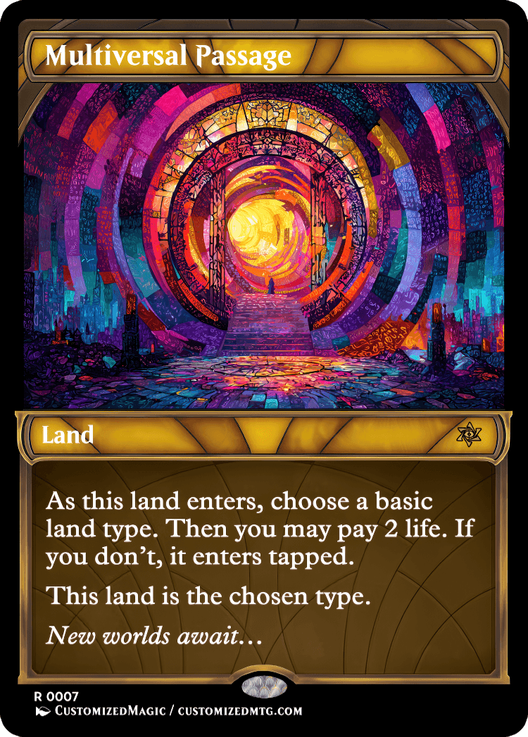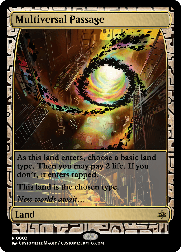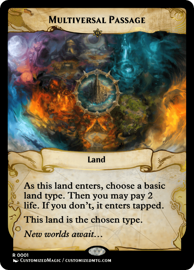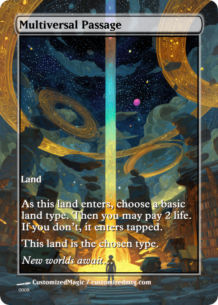 Price range: $4.00 through $8.00Custom Handmade Multiversal Passage proxies made from real Magic the Gathering card with many different alternated arts available for purchase.