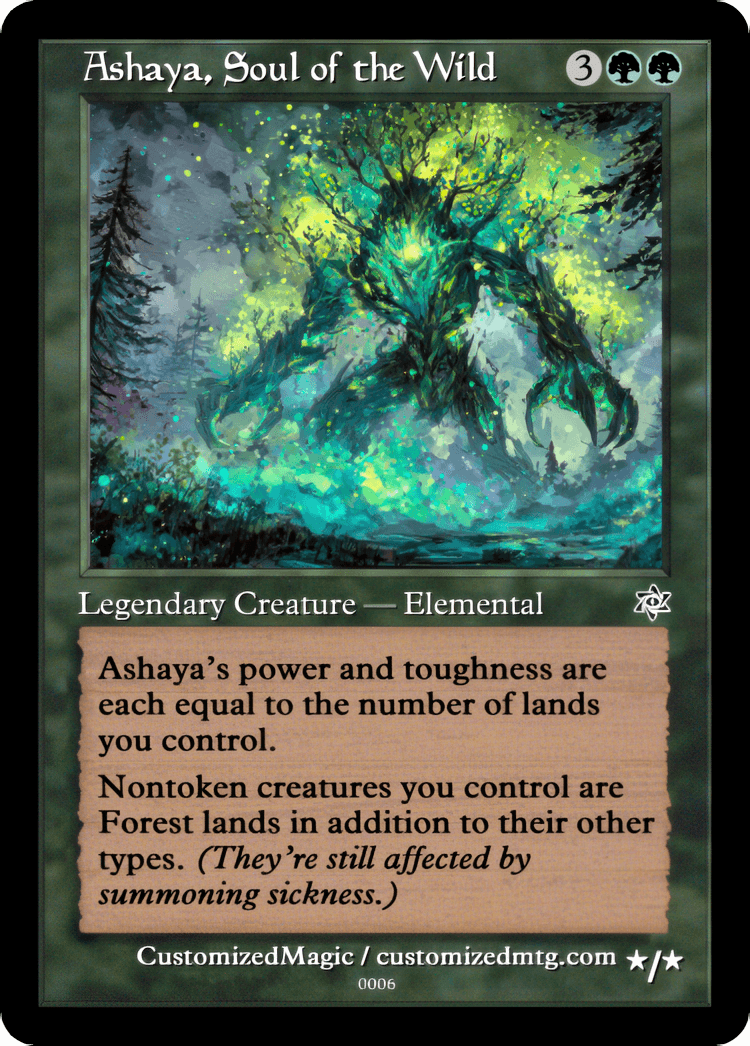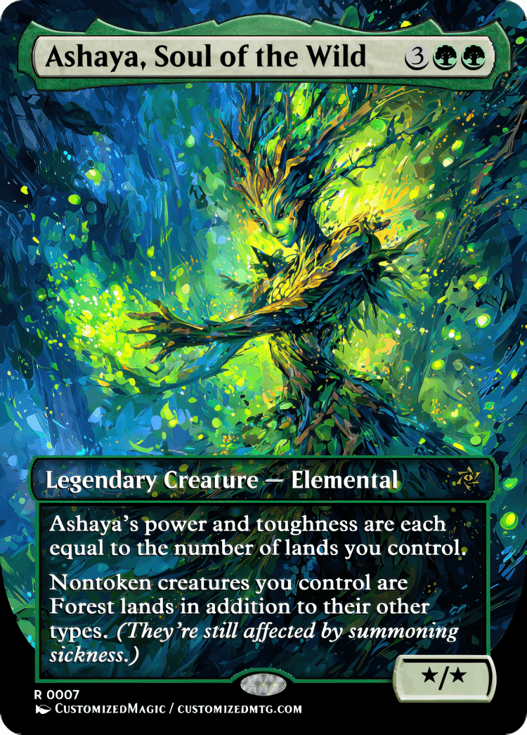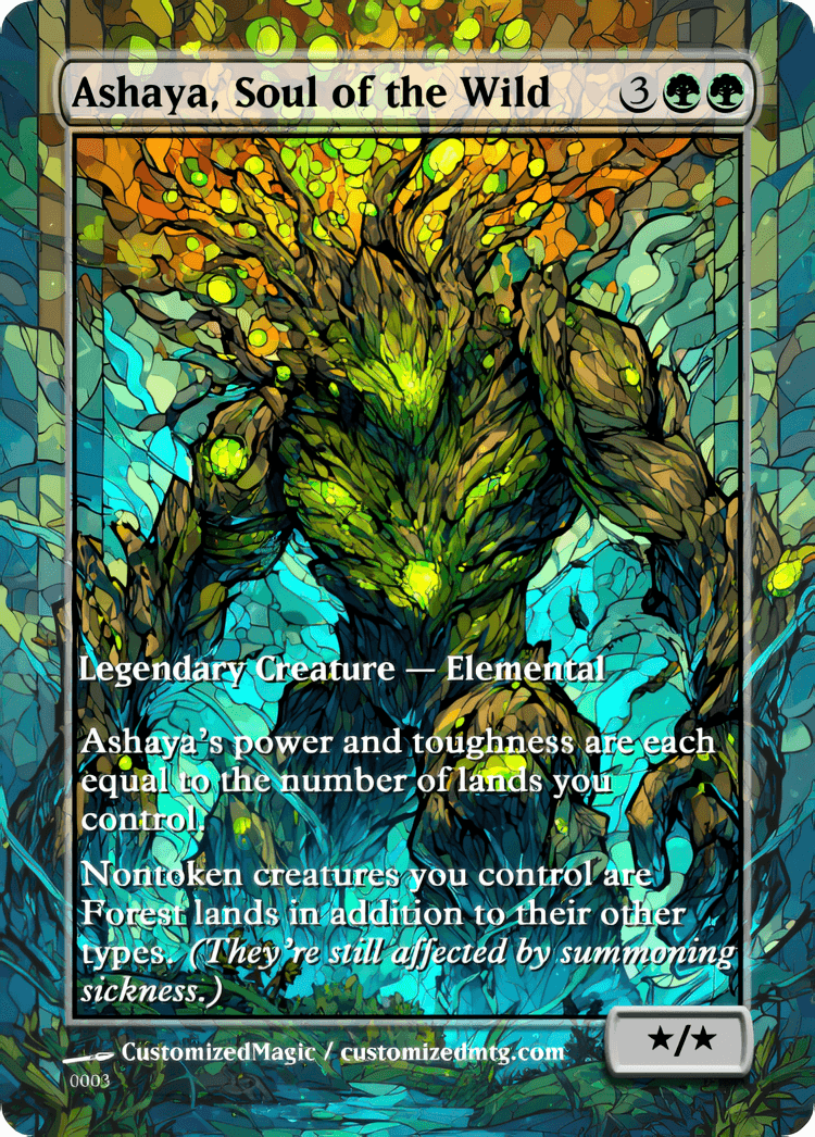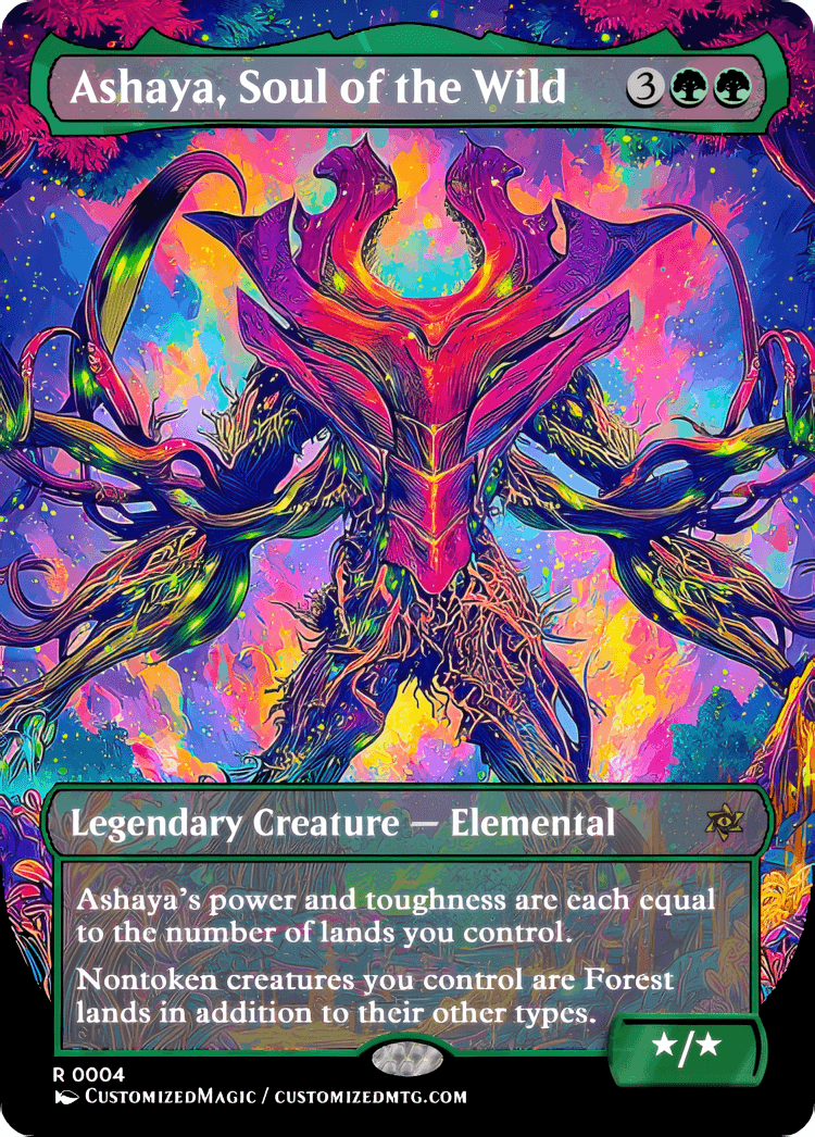 Custom Handmade Ashaya, Soul of the Wild proxies made from real Magic the Gathering card with many different alternated arts available for purchase.
