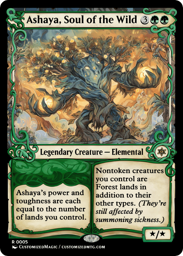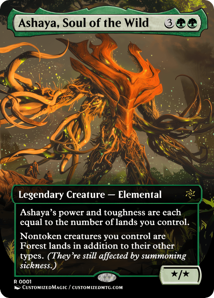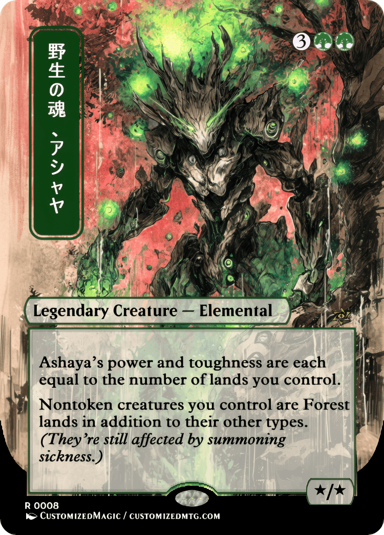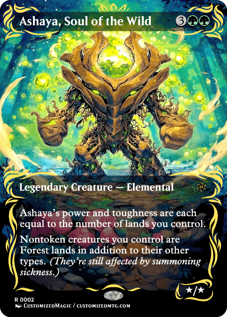 Custom Handmade Ashaya, Soul of the Wild proxies made from real Magic the Gathering card with many different alternated arts available for purchase.
