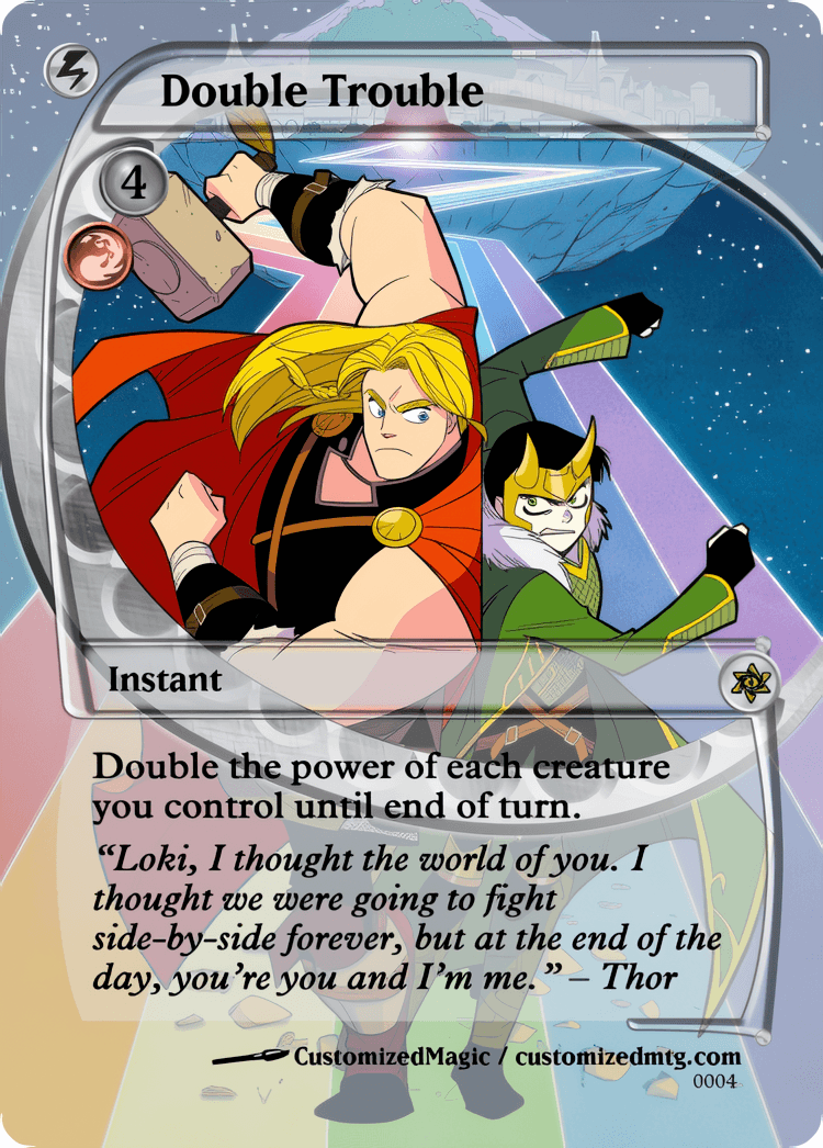 Custom Handmade Double Trouble proxies made from real Magic the Gathering card with many different alternated arts available for purchase.