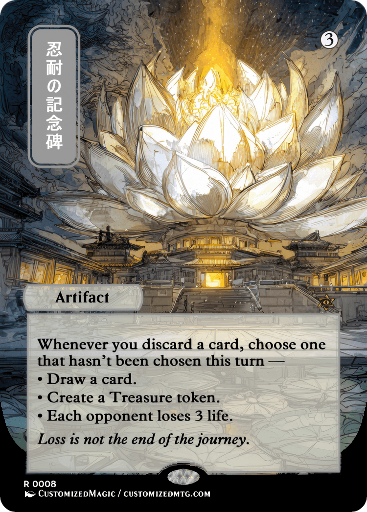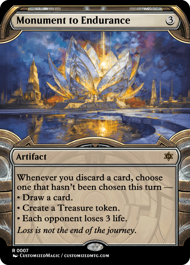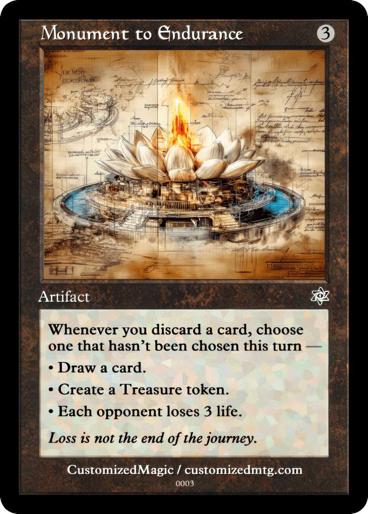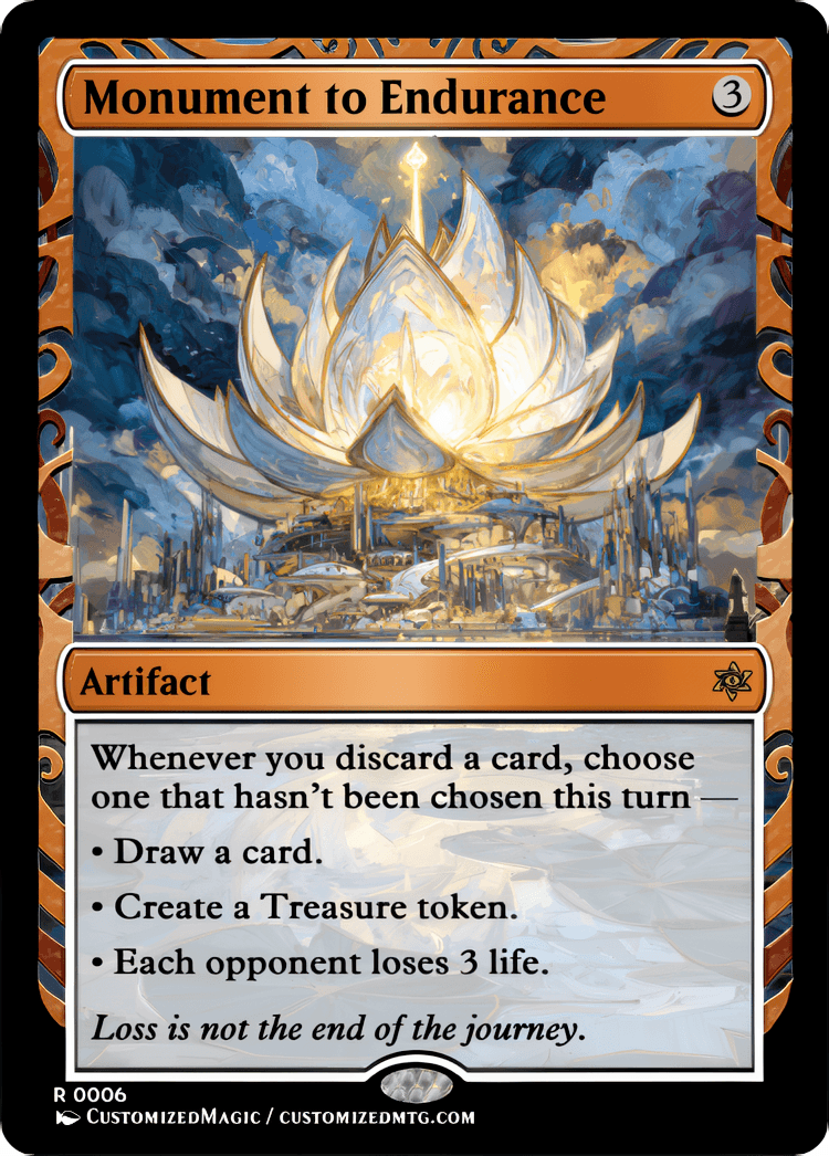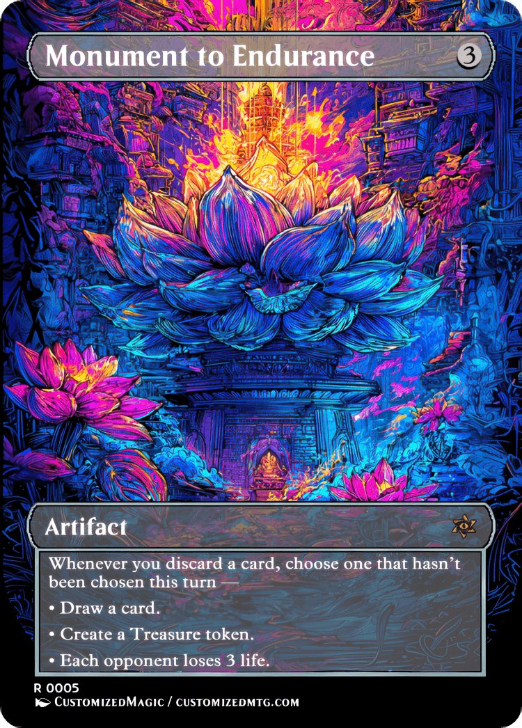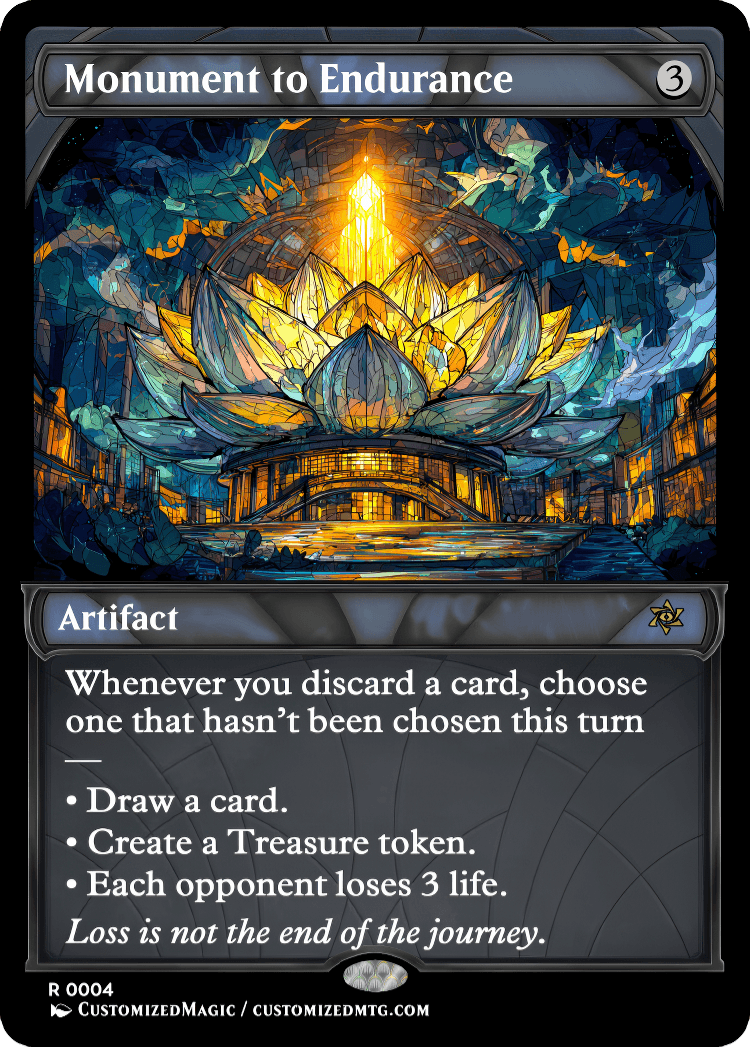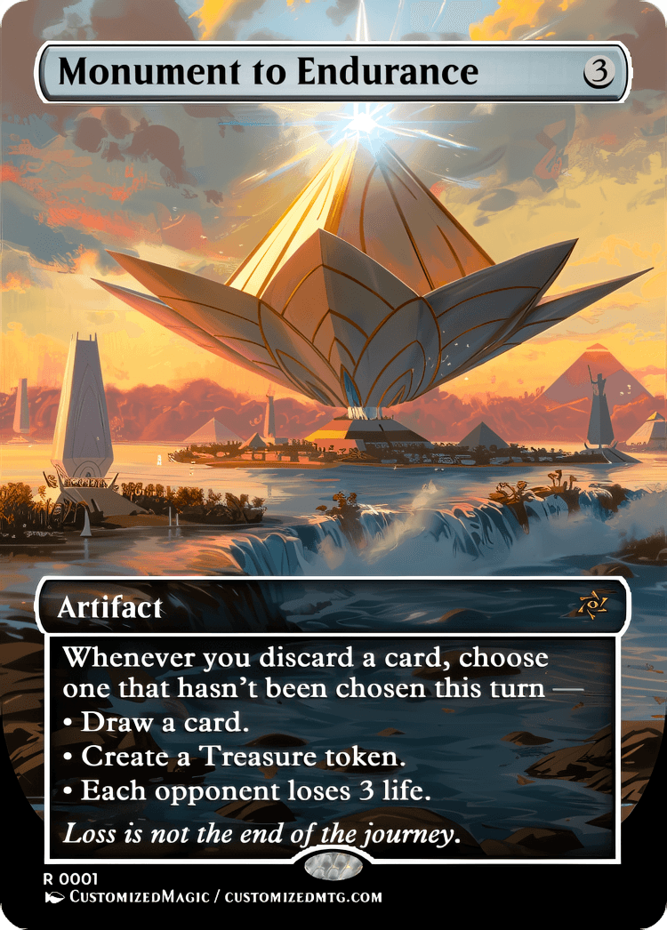 Price range: $4.00 through $8.00Custom Handmade Monument to Endurance proxies made from real Magic the Gathering card with many different alternated arts available for purchase.